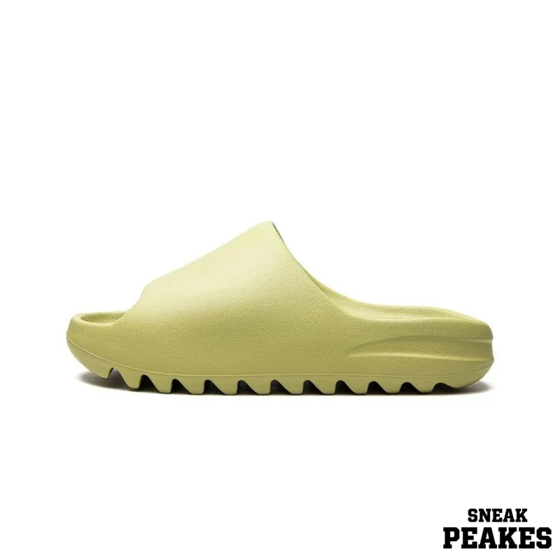 Its matte resin-green tone brings Yeezy’s signature natural palette, making it easy to style with both streetwear and casual outfits. The serrated outsole enhances traction and stability, ensuring comfort whether worn indoors or out.