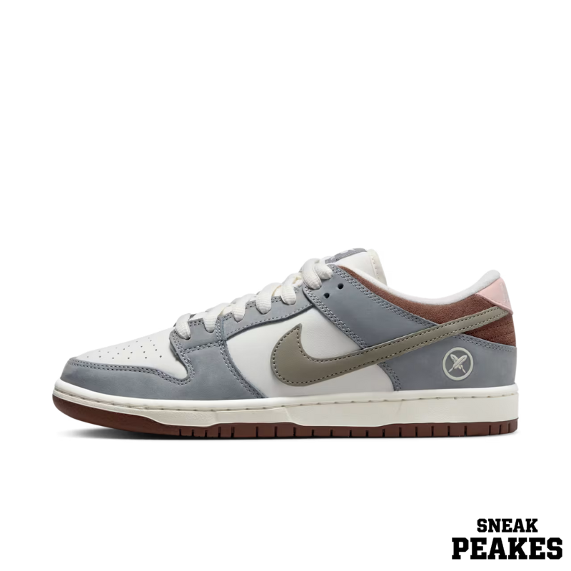 A combination of white, grey, and chocolate brown tones creates a balanced and versatile look, while subtle pink hits on the heel tab and outsole add a signature personal touch. The feather emblem on the heel nods to Yuto’s identity, giving the sneaker a unique storytelling detail.